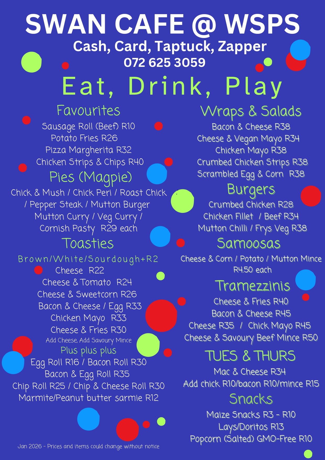 - Pocket Money cards (R25) available via the app (not required unless using the facility). You can also print your own and laminate it (free).