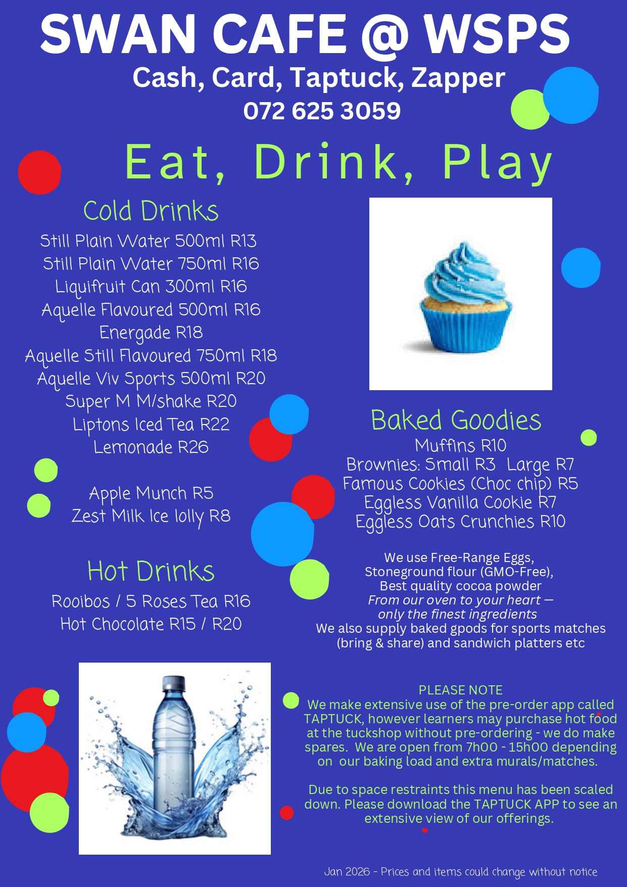 - Payments accepted: Cash, Card or Taptuck Pocket Money